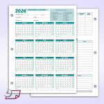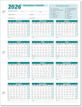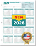 Work Tracker Attendance Calendar Cards- 8 ½ X 11 Cardstock / Pack of 25 Sheets (2026)