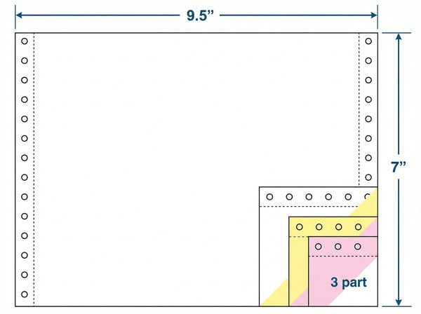 Computer Forms 9 1/2in. x 7in. Blank White Carbonless 3 Parts with Marginal perforations White /Canary /Pink